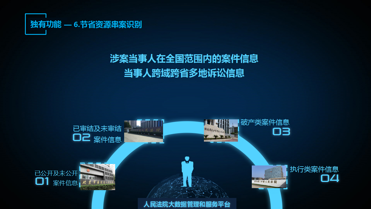 “法信2.0智推系統(tǒng)”的第六個(gè)功能,是基于人民法院大數(shù)據(jù)管理和服務(wù)平臺(tái)的全量案件信息,對(duì)同一當(dāng)事人跨域跨省的多地訴訟案件進(jìn)行自動(dòng)認(rèn)定,從而規(guī)避當(dāng)事人惡意訴訟風(fēng)險(xiǎn),輔助法官進(jìn)行累犯認(rèn)定。