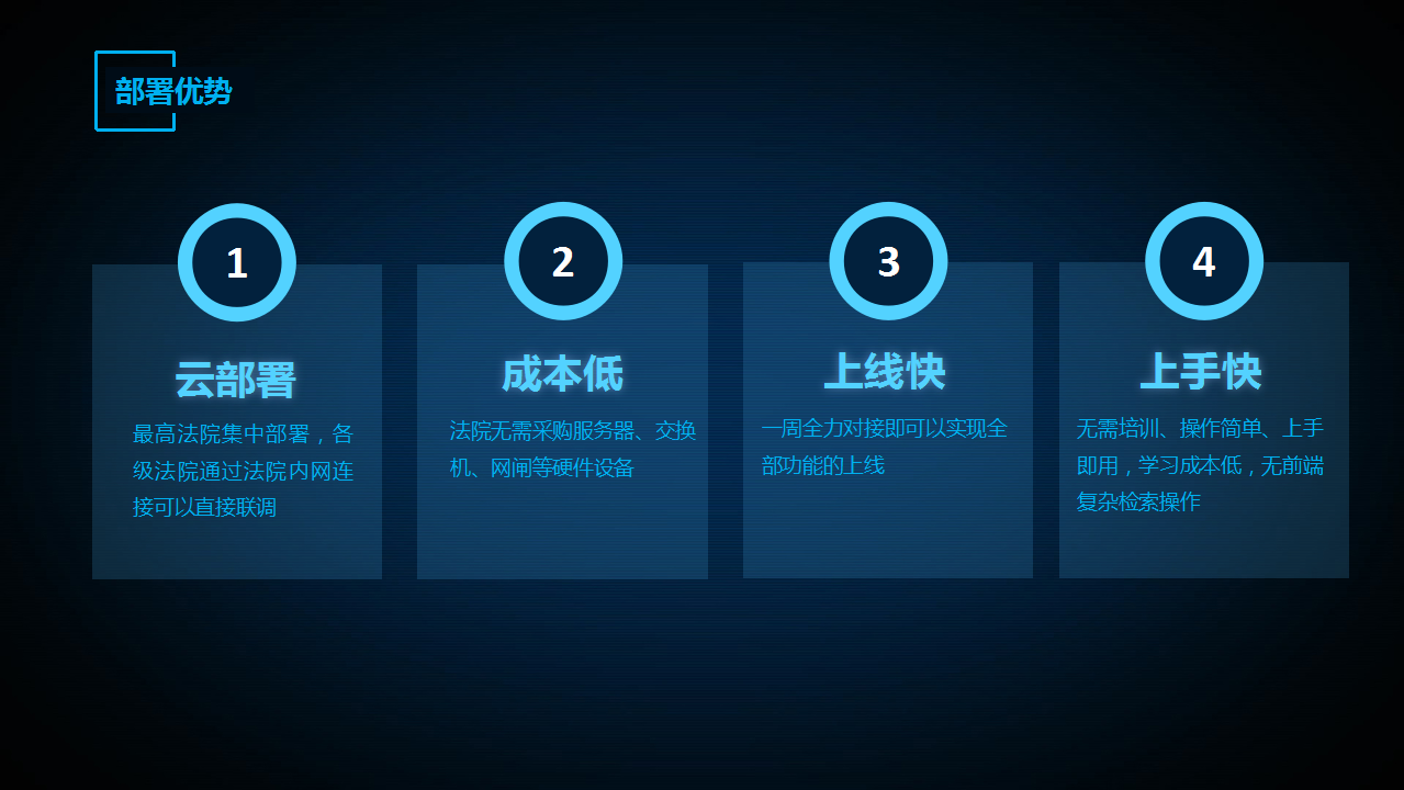 2.成本低——法院無需采購服務(wù)器、交換機(jī)、網(wǎng)閘等硬件設(shè)備