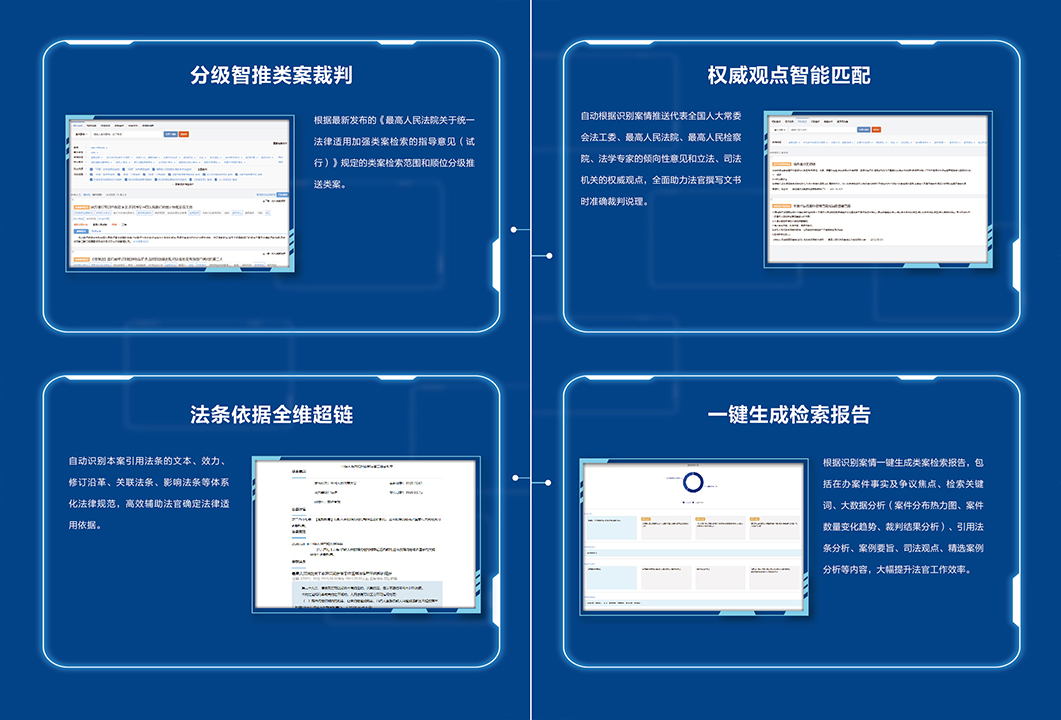 特別是今年先后下發(fā)了《關(guān)于統(tǒng)一法律適用加強(qiáng)類案檢索的指導(dǎo)意見》《關(guān)于完善統(tǒng)一法律適用標(biāo)準(zhǔn)工作機(jī)制的意見》,在這些文件中都對(duì)利用信息化手段提升類案推送的智能化、精準(zhǔn)化水平提出了明確要求。