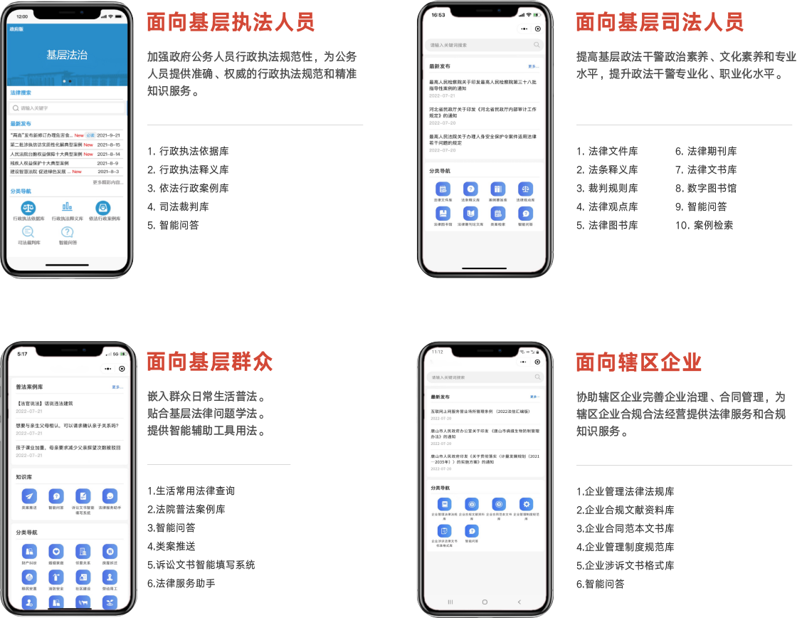 緊密貼合基層學(xué)法普法用法的實際需求面向基層執(zhí)法人員、基層司法人員、基層群眾及轄區(qū)企業(yè)